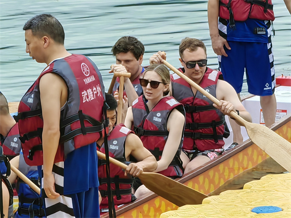 來自英國、埃及、古巴、加拿大、比利時等外國友人及相關國家駐渝領事也參與了本次龍舟賽活動,由外國友人與當地選手組成的聯合隊伍開展的龍舟趣味挑戰組活動也精彩紛呈,贏得現場觀眾陣陣喝彩。