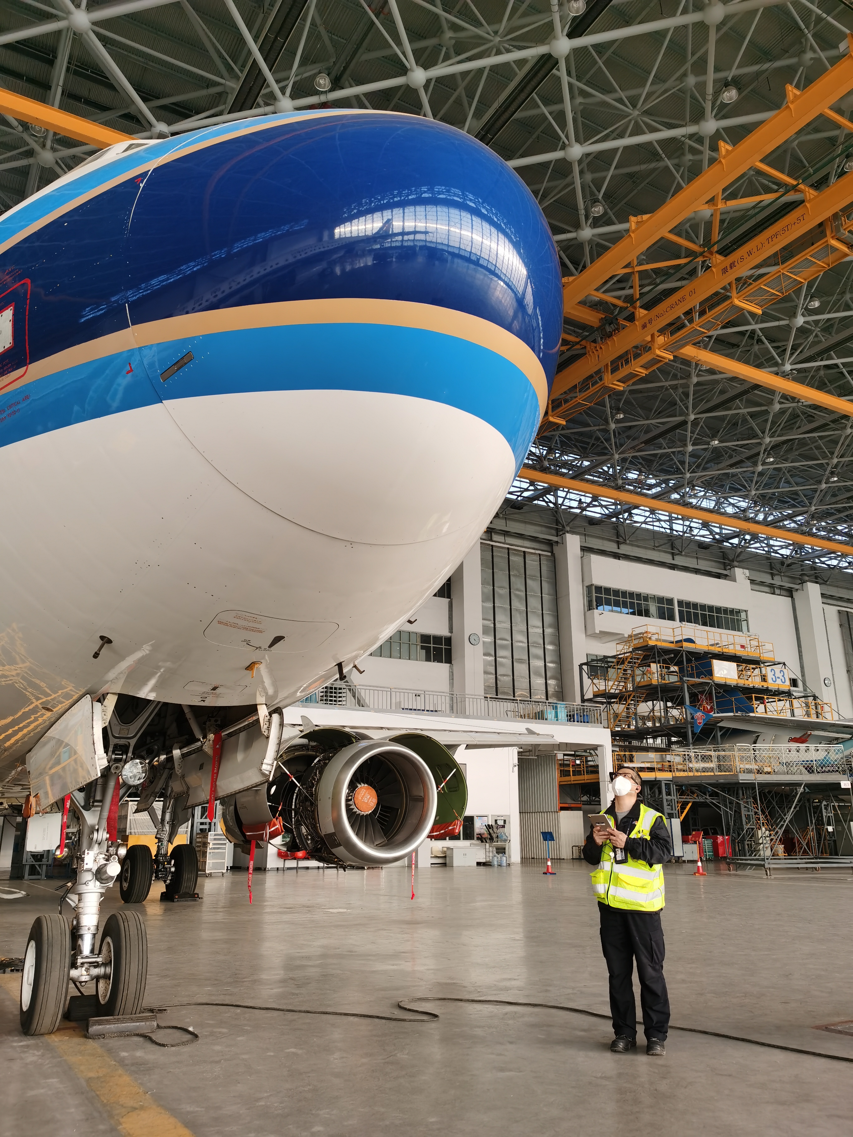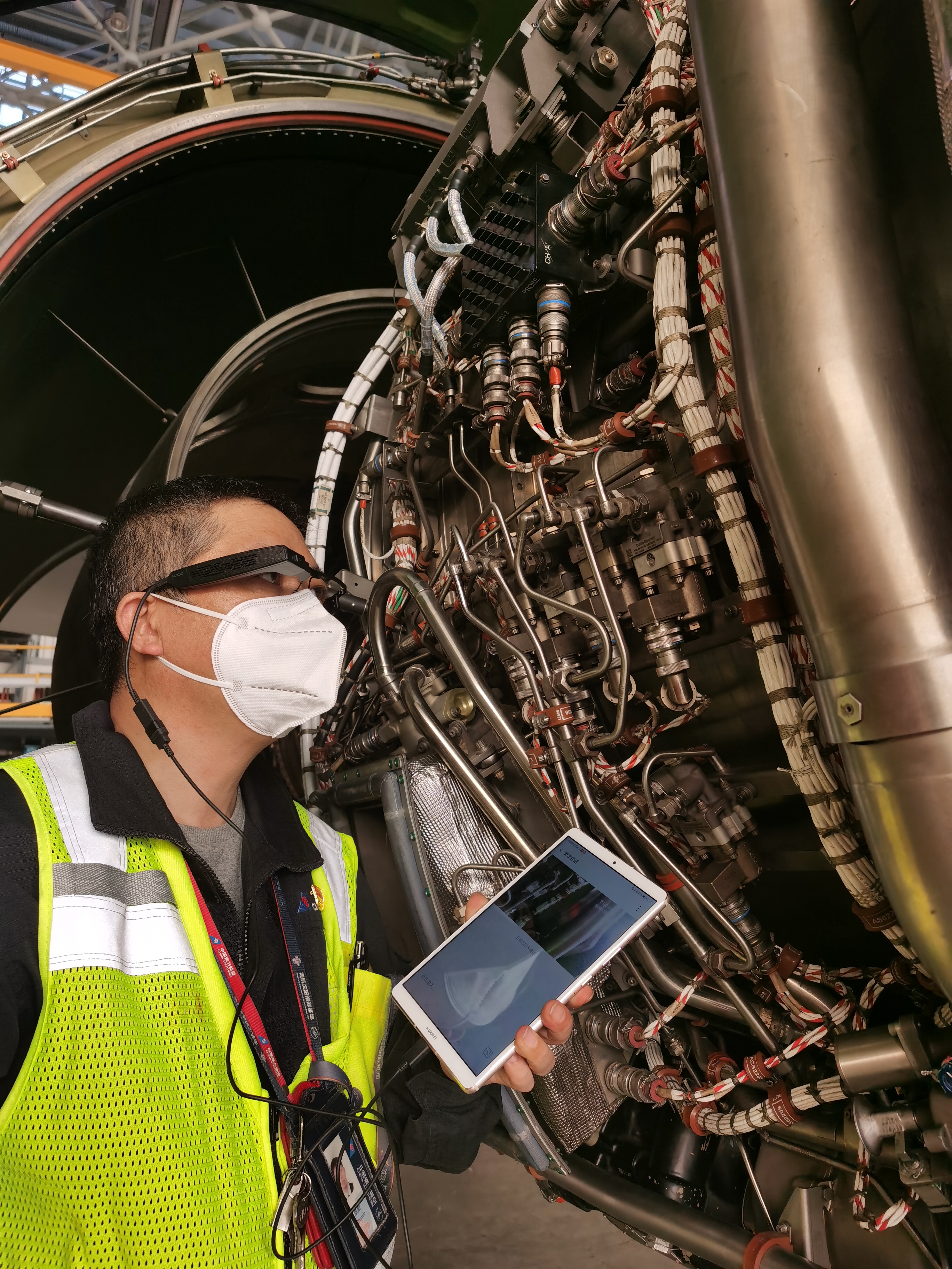 南航機務工作人員使用AR智能眼鏡進行飛機安全檢查