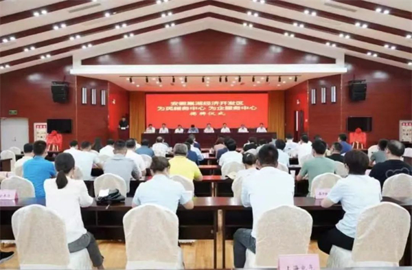 為深入貫徹落實省委、省政府「一改兩為五做到」大會精神,堅定不移為民辦實事,為企優環境,進一步深化「放管服」改革、優化營商環境、強化為民為企服務,近日,安徽巢湖經開區為民服務中心、為企服務中心正式掛牌成立。經開區黨工委書記、管委會主任黃衛東出席會議並講話。合肥市委政法委、合肥市經信局、合肥市數據資源局、合肥市政務服務管理局、合肥市中小企業服務中心負責人,委領導程習龍、黃治斌、周毅,管委會相關部門負責同志和部分企業家代表參加揭牌儀式。