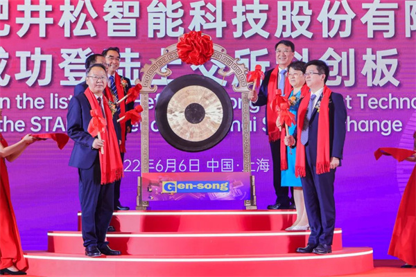 合肥市委常委、常務副市長葛斌在儀式中致辭,祝賀井松智能上市成功,並對井松智能未來發展提出期望:希望井松智能以此次上市為契機,切實增強核心競爭力,以更加優異的發展業績,為廣大投資者創造更大價值,在引領行業發展與服務社會方面發揮更大作用。