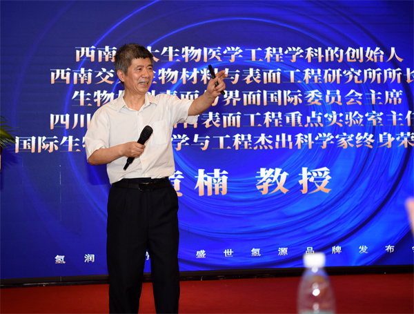 西南交大生物醫學工程學科創始人、享受國務院特殊津貼、西南交大生物材料與表面工程研究所所長、生物材料表面與界面國際委員會主席、四川省人工器官表面工程重點實驗室主任、國際生物材料科學與工程傑出科學家終身榮譽獎獲得者、西南交通大學黃楠教授在項目品牌發佈會上詳細闡述了氫分子在醫學領域中的應用,使在座嘉賓了解了如何正確理解氫分子,以及如何利用氫分子進行疾病的預防控制,同時展示了氫分子多領域、多元化及安全有效的應用,提升了在座嘉賓對氫分子應用的關注度和認知度。黃楠教授表示,將不斷助推氫分子醫學成果轉化和落地應用,造福大眾健康。