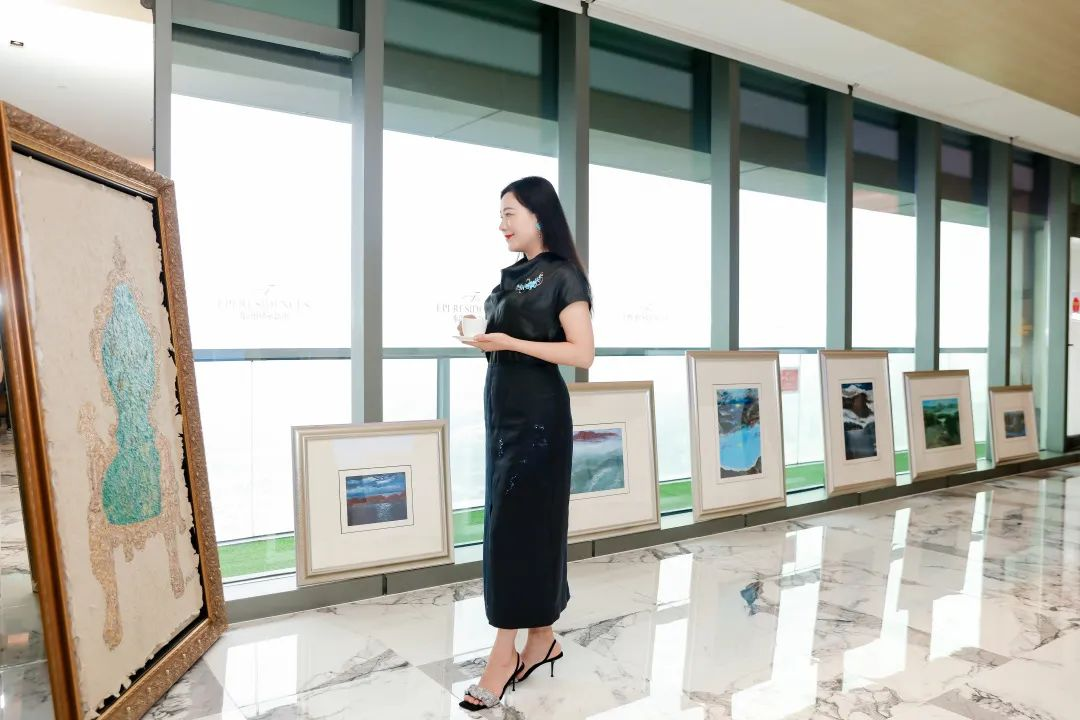 香港中外文化藝術交流協會會長楊濤認為,東海國際公寓就像是一個藝術品,身處這個150米高空的天際藝廊,就像在雲端的藝術空間遊走。今天的天氣又是雲霧繚繞,感覺充滿了福氣。在這裏觀賞藝術品,是一種心境的享受,人與藝術互相滋養。