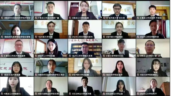 經過前期比賽的激烈角逐,哈爾濱工程大學、東北林業大學、黑龍江大學、哈爾濱商業大學、佳木斯大學、齊齊哈爾大學、東北石油大學、黑龍江科技大學、牡丹江師範學院、哈爾濱學院、牡丹江大學、鶴崗師範高等專科學校12支高校代表隊共48名師生參加線上決賽——「一戰到底」團隊必答賽。