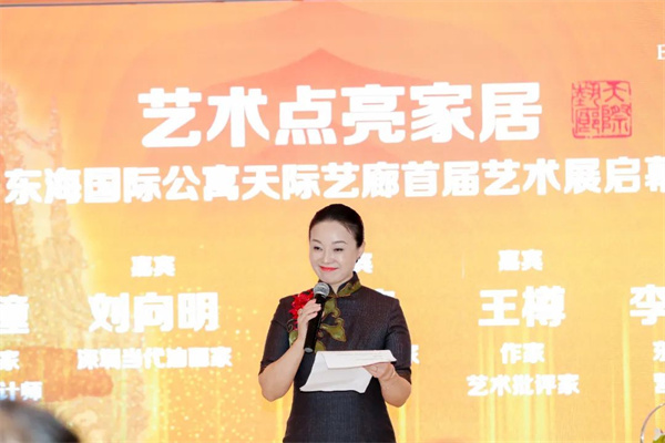 跨界藝術家,作為東海國際公寓的業主,也是本次活動的發起人之一崔文僮女士擔任活動主持人,她表示希望能通過天際藝廊,讓藝術融進社區生活,成為日常的一部分,讓藝術空間可以傳承豐富一代代業主的精神生活。