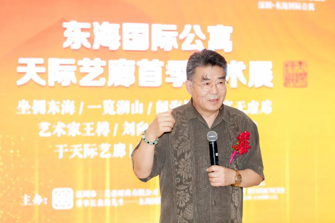 香港中外文化藝術交流協會會長楊濤在致辭中提到,東海國際公寓就像是一個藝術品,身處這個150米高空的天際藝廊,就像在雲端的藝術空間遊走。在這裡觀賞藝術品,是一種心境的享受,人與藝術互相滋養。