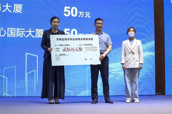 記者了解到,瀋陽渾南一直高度重視區域商務辦公經濟發展,先後成立了由13個部門組成的區域樓宇總部經濟發展專班,全市首創了為樓宇「一對一」服務的「樓宇管家」。此次活動邀請了全區32座商務樓宇運營方負責人、重點企業代表、中介機構參加。其中,4家企業成為首批獲批渾南區樓宇新政「十條」政策獎勵的企業,並在現場領取了400萬元的獎勵資金。同時,渾南區商務局與國際知名第三方中介機構戴德梁行、國內知名第三方租售平台貝殼信息科技現場簽署招商合作協議。