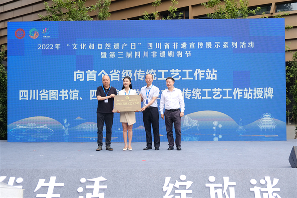 啟動儀式上,四川省委宣傳部、文化和旅遊廳、商務廳、省體育局、省中醫藥管理局領導向四川省第五批國家級非遺代表性項目、首批四川省非遺保護基地和首個省級傳統工藝工作站——四川省圖書館、四川美術學院駐夾江縣傳統工藝工作站授牌。成都大學駐彭州市、四川美術學院駐遂寧市安居區、成都紡織高等專科學校駐馬邊縣、四川化工職業技術學院駐瀘州市納溪區4個傳統工藝工作站進行合作創建簽約,攜手共建傳統工藝振興平台。