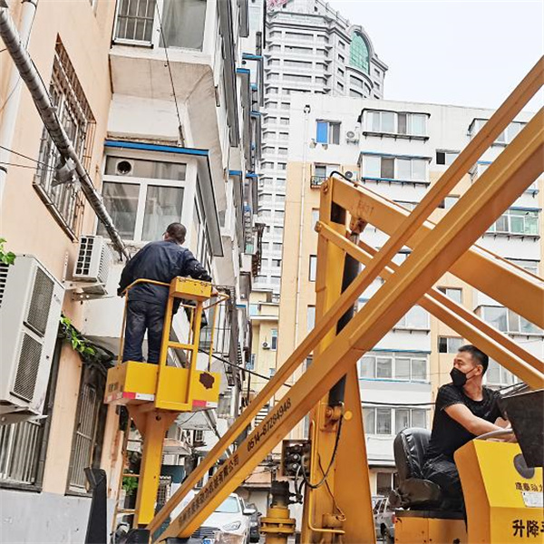 清潔瀋陽,在老大難上下足功夫。6月12日13時,和平區南市場街道和平新村社區振玉里小區,兩名物業志願者登上舉升車,對空中不再使用的廢棄線纜進行清除。而正在使用中的電線、電話線、網線,已被全部綑紮完畢,用綠葉裝飾包裹了起來。離地面數米高的「蜘蛛網」既影響美觀又存在安全隱患,一直是社區環境清理的難點,如今經過認真梳理,一把一把地綑紮,「蜘蛛網」拉成一條「風景線」,穿上了漂亮的綠色外衣。