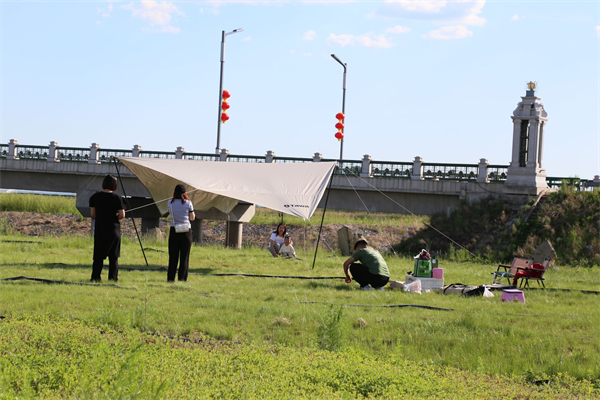 6月11日,在黑龍江省寶清縣鳥語湖公園,湖水微瀾,清脆的鳥鳴聲不絕於耳。遠處廊橋上,歡樂的人們正在合影留念;岸邊的青草地上,一家人正搭起營帳準備露營野炊;寶石河橋旁,成片的雛菊花帶蜿蜒鋪展,在微風的吹拂下搖曳生姿,美麗的姑娘和可愛的孩子們在花叢中打卡拍照,臉上洋溢着幸福的笑容……人們盡情享受着寶清縣生態建設的豐碩成果。