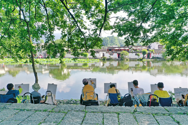 黟縣絕佳的自然生態環境和厚重歷史文化助推了鄉村旅遊的快速發展。黟縣全境就是一座可以隨手觸摸、親近對話、沒有屋頂的博物館,是藝術創意的大美院,每年吸引數十萬全國乃至海外的美術專業學生、青年藝術家慕名前來寫生考察。這裏的白牆青瓦,小橋流水,都是他們寫生的最佳素材。經過20年的發展,黟縣已經成為全國各大中專院校重要的寫生基地。目前,黟縣有129家的寫生基地,每年接待超过30萬的寫生學生,據2021年數據:這樣一個寫生的群體能帶來10個億的產值。