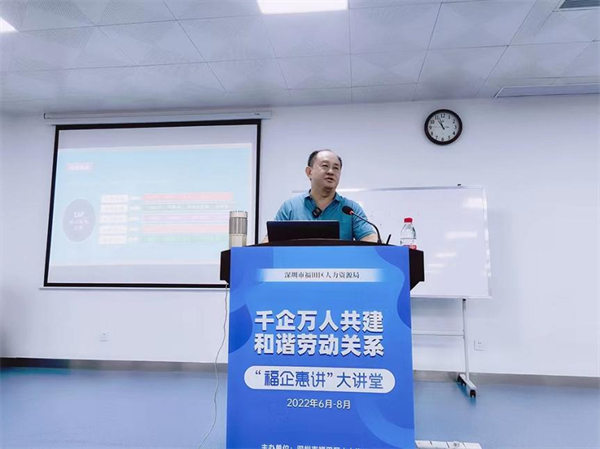 6月14日,在深圳福田區國際人才大廈,「千企萬人共建和諧勞動關係「福企惠講」大講堂」(簡稱「福企惠講」大講堂)推出了首期課程。國內EAP專家紀志龍先生開啟了「福企惠講」第一講,主題是「員工關愛:企業文化心視角」,現場及線上參與企業共計超過千家企業,線下聽講人數超80人,線上超2000人。