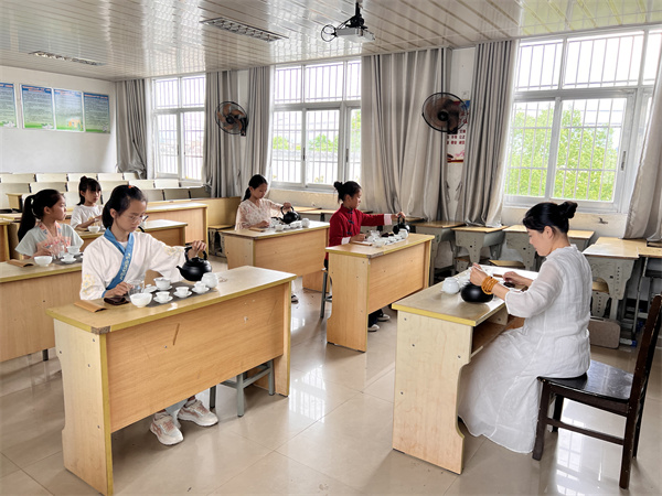 茶文化有著悠久的歷史和深厚的內涵,這學期,學校結合家鄉特色開展了茶藝課程,聘請校外專業茶藝師參與教學,共有三十多名學生報了名。該校教導主任汪元元表示,希望通過開設茶藝課,讓孩子瞭解茶、喜愛茶,通過敬茶、奉茶學會尊敬他人,學會禮儀文化,增強學生的藝術修養。