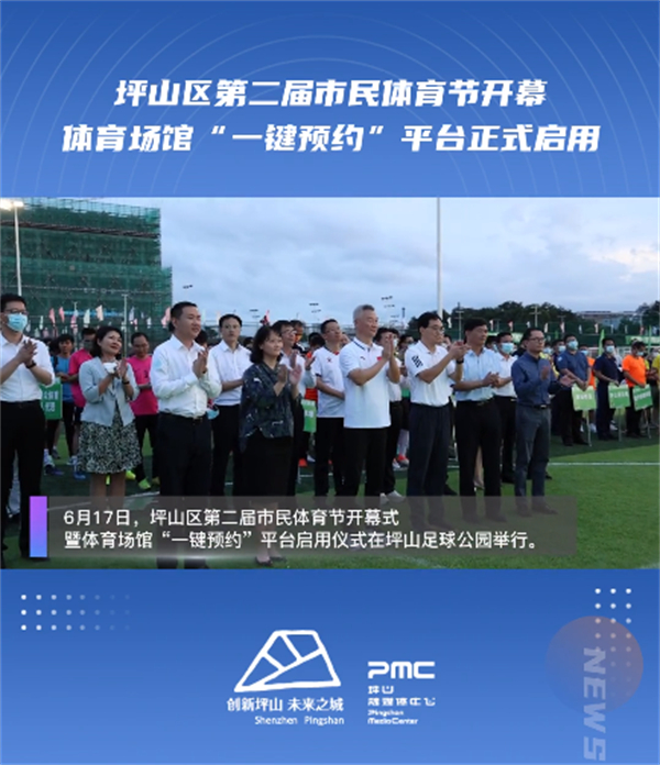 6月17日,第二屆「坪山市民體育節」開幕,體育場館「一鍵預約」平台正式啟用,坪山區足球聯賽同時開賽。坪山區委書記楊軍,區委常委、宣傳部部長鄧艷東參加活動。