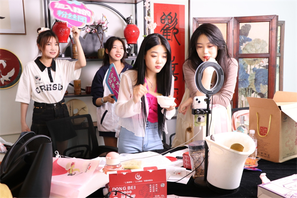 決賽現場,20名參賽選手在精心裝飾的直播間裏,熱情地向線上觀眾推薦樺川農特產品,為樺川縣電商發展注入新動能。在選品方面,組委會嚴把質量關,星火大米、冠三川山藥煎餅、小夥伴東北辣椒醬、東北小米、乾貨等一眾農特產品成了「搶手貨」。直播間裏,大家各盡所能、各顯神通,或現場試吃,或即興表演,生動地講解與看得見的「體驗」吸引了手機另一端的萬千觀眾,大家紛紛在線上下單購買,熱烈的氣氛「引燃」直播間,成為一道道亮麗的風景線。