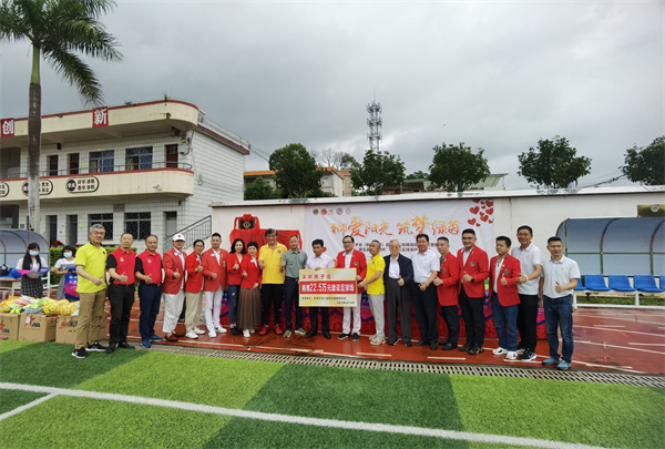 黃水平校長介紹,自2018年捐建大佳小學足球場後,深圳獅子會及愛心人士再次大愛出資22.5萬元(人民幣,下同)捐建鶴鳴學校足球場為孩子們解決了沒有場地訓練比賽的困難,令鶴市鎮足球水平取得了巨大的飛躍。吳周琴書記代表鶴市鎮河布村兩委幹部熱烈歡迎並感謝深圳獅子會率隊來到河布村助力鄉村振興和足球助學,並代表鄉親們表示感謝。