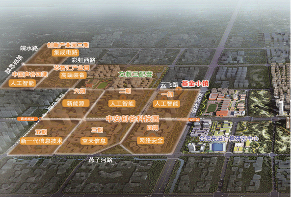 在空間佈局上,「科大硅谷」先期規劃建設「一核兩園一鎮」(核心區、蜀山園、高新園以及「訊飛小鎮」)功能承載區。其中,一核是指「科大硅谷」核心區、高新園與「訊飛小鎮」均坐落於合肥高新區,占「科大硅谷」總體面積的近九成。