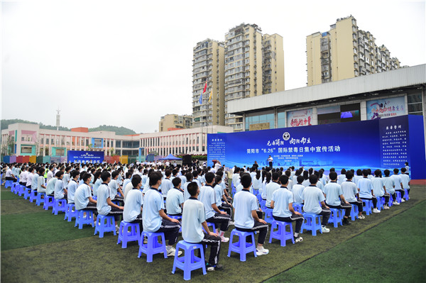 「我宣誓:我是中華民族的兒女,不忘恥辱,堅決與毒魔作鬥爭,珍愛生命,拒絕毒品......」,6月24日,在第35個國際禁毒日即將來臨之際,四川省簡陽市舉行「6·26」國際禁毒日集中宣傳活動,來自簡陽各行各業的幹部職工、市民群眾、禁毒志願者、學生代表進行了「禁毒宣誓」。