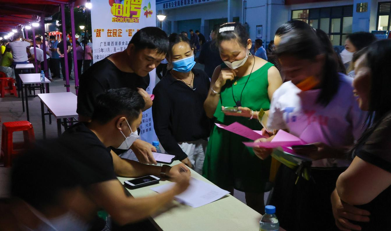 首場活動新穎的模式、優質的崗位、適宜的區位吸引了近千名易地扶貧搬遷脫貧勞動力及周邊鄉鎮求職者到場求職登記。活動為現場企業與求職者提供面對面交流機會的同時,還將進行後續跟蹤服務,建立台賬,向求職者提供三次以上的求職匹配服務,幫助靖西市重點人群實現穩就業和快就業,促進靖西市經濟平穩發展。(凌開記 閉榮蓉 歐陽萍)