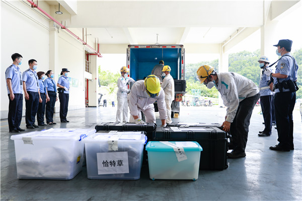 6月17日,在廣州海關工作人員的押運下,待銷毀毒品運抵位於廣州白雲區的銷毀場地,由具有無害化銷毀毒品資質的公司進行處理,經過高溫焚燒後熱解氣化。銷毀過程中產生的廢氣進行冷卻、除塵、脫硫等淨化處理,最終實現達標排放。廣州市人民檢察院派員對銷毀工作進行全程監督。