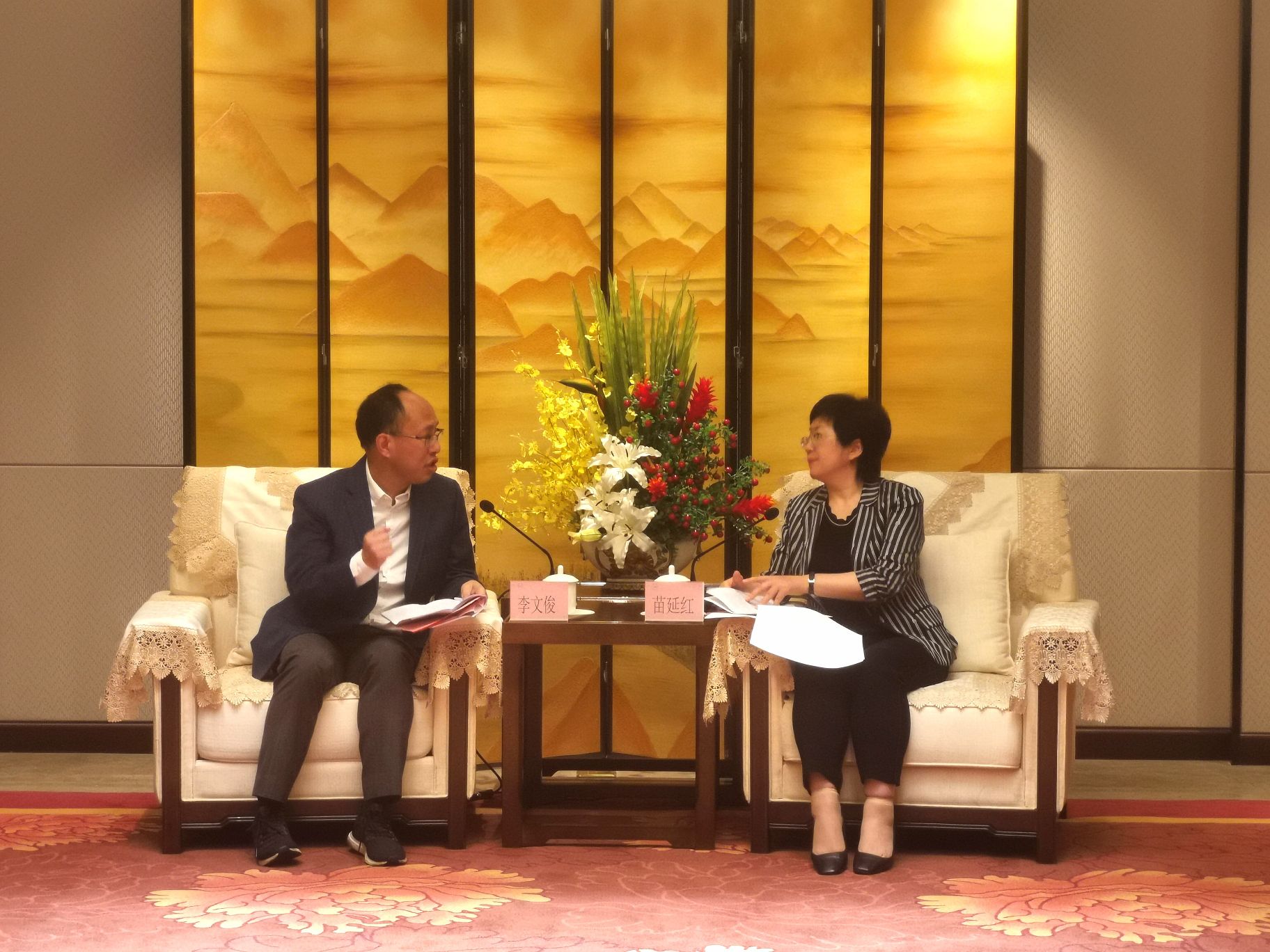 6月24日,海南省委常委、統戰部部長苗延紅在海口會見香港海南社團總會會長李文俊一行。