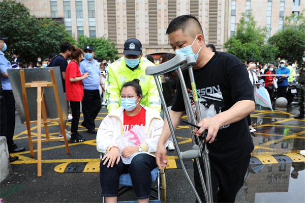 中考首日恰逢降雨天,為確保考生順利赴考,交警各轄區大隊警力在6時30分全部到崗到位,重點加強公路大橋、二環橋、文昌橋等主幹道路、易堵路口以及考場周邊的疏導聯動。在一中考場門前,隨着降雨逐漸增大,交警道里大隊警力加大對沿線交通流量疏解力度,保障送考車輛及時到位,即停即走。期間幾名行走不便乘坐輪椅趕赴考場的家長提前向執勤警力求助,希望開闢綠色通道。執勤警力立即與學校等部門溝通,並親自推送考生進入考場,助力其安心赴考,交警部門的暖心舉措得到周邊群眾的一致稱讚。