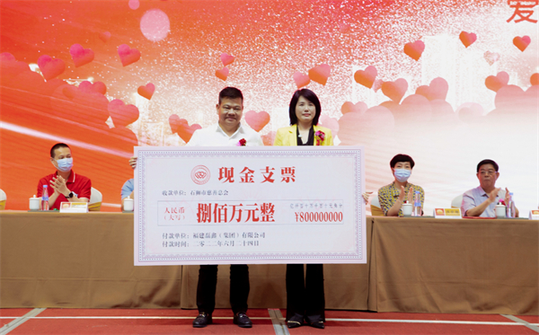 成立大會上,福建磊鑫集團向石獅市慈善總會捐款800萬元
