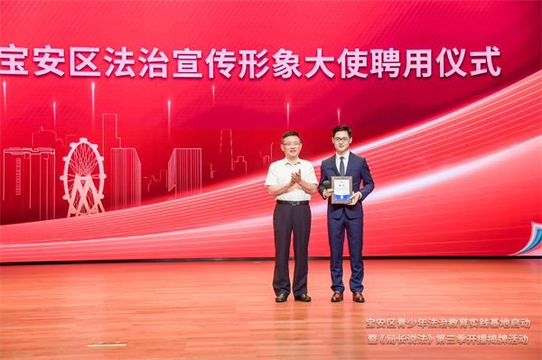 弘揚法治理念、傳播法治精神,為構建「尊法、學法、守法、用法」的法治平台,6月25日下午,深圳寶安區青少年法治教育實踐基地啟動暨《局長說法》第三季開播揭牌活動在寶安區青少年宮舉行。寶安區委常委、宣傳部部長周學良、寶安區副區長朱雲,以及寶安區相關職能部門、各街道的領導嘉賓參與活動。本次活動還為寶安區普法小使者、寶安區法治宣傳形象大使頒發了聘書。寶安區普法小使者來自於寶安各個學校,參加了普法講師培訓後正式「上崗」。寶安區法治宣傳形象大使由寶安區融媒體中心主持人姜賀擔任,姜賀主持法治節目多年,並獲得省市多項專業獎項。接下來肩負法治宣傳使命的使者們,將傳播法治種子、讓法治理念潤物細無聲、傳遍千家萬戶。