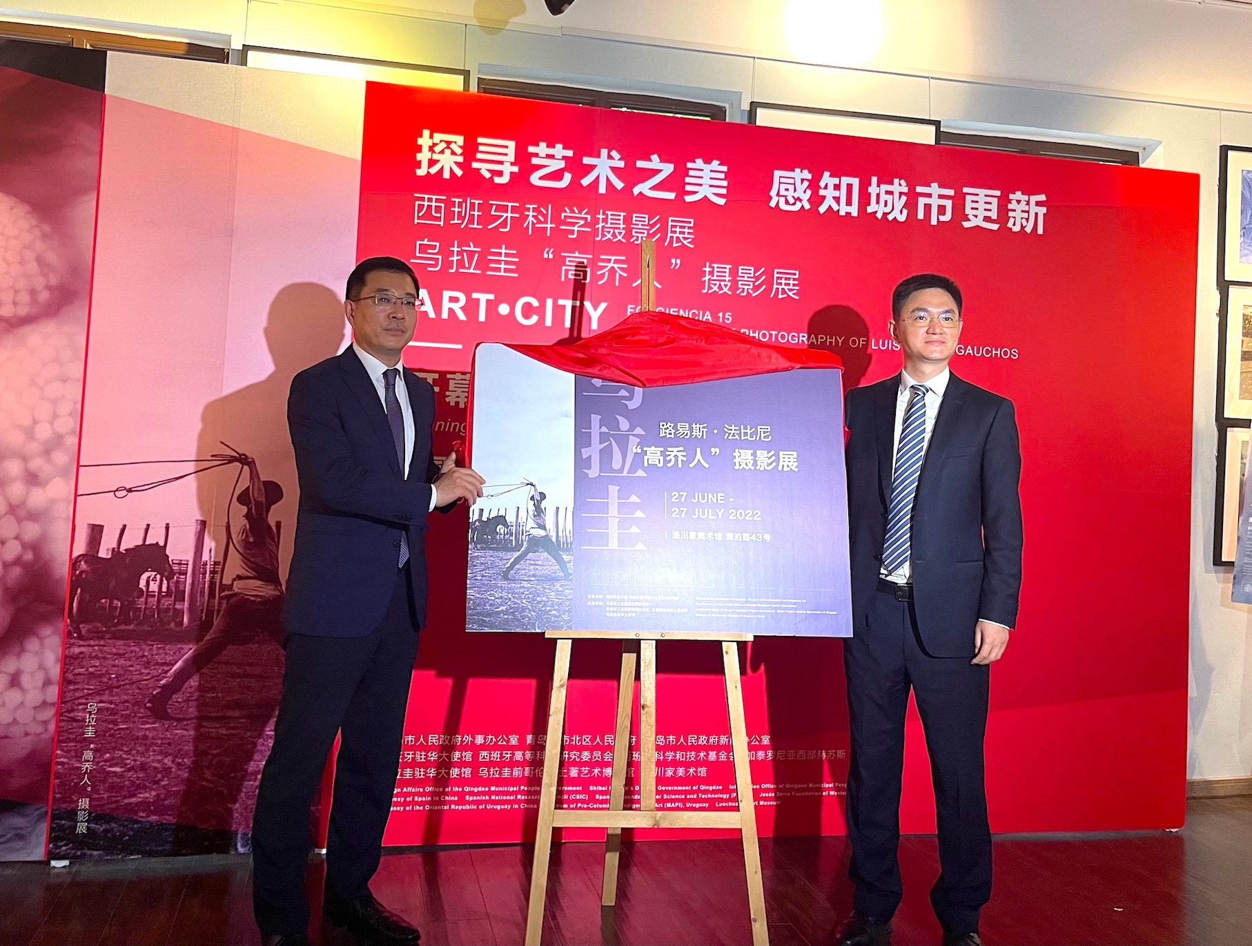 6月27日,「探尋藝術之美 感知城市更新」西班牙科學攝影展和烏拉圭「高喬人」攝影展開幕式在青島市市北區大鮑島文化休閒街區洛川家美術館舉辦。西班牙駐華大使拉法爾·德斯卡亞·馬薩雷多出席展覽開幕式並致辭,烏拉圭駐華大使費爾南多·盧格里斯視頻致辭,青島市外辦主任牟俊典,青島市市北區政府副區長嚴俊出席開幕式,青島市外辦副主任王祥瑜主持儀式。