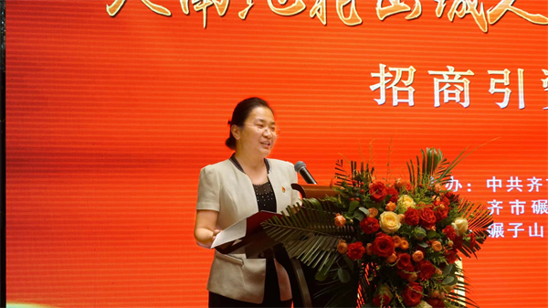 碾子山區委書記那君喆對出席推介會市領導和各地企業家們表示熱烈歡迎並誠邀廣大企業家投資興業回鶴城,共同關注支持市內「飛地園區」碾子山。