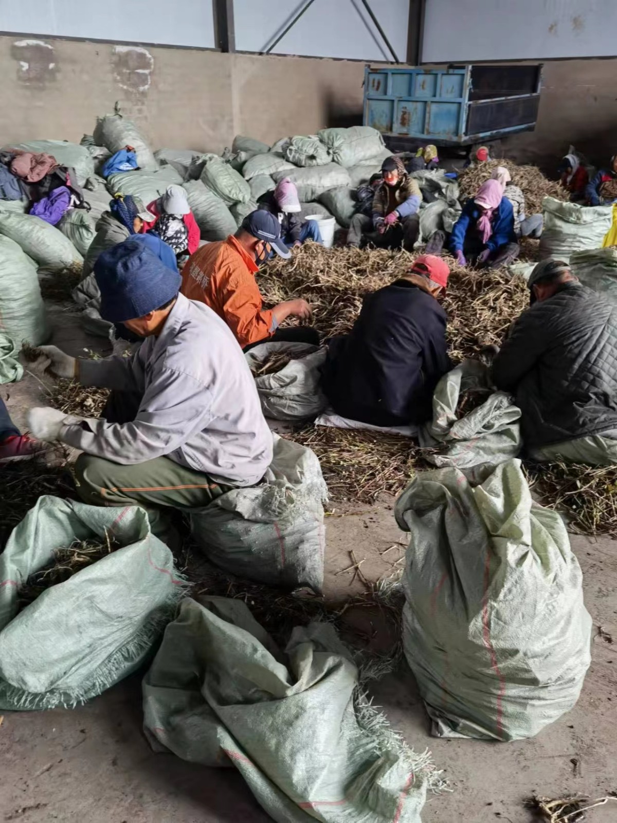 堆成小山包的桔梗鋪滿大庫,農戶們席地而坐,精心挑選出高質量的中藥材裝袋,時而說「雨什麼時候停,得趕緊接着起收」,時而說「今年收的真好,太高興了。」康經宇說,「感謝黑龍江省農業農村廳的好政策,感謝寶清縣委、縣政府與縣農業農村局的大力支持,我們是跟夾信子鎮政府的黨員合作的,大家都非常高興,非常滿意。這是起收的第三天,現在在下雨,所以農戶都在大庫里選貨。目前用工量一天在200人左右,一個人工每天140元,帶動全鎮村民脫貧致富,同時輻射周邊村屯農戶共同致富。」