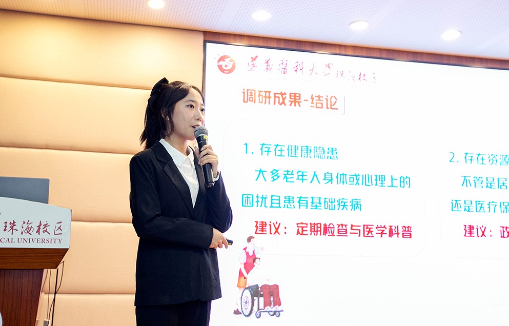 遵義醫科大學珠海校區基礎教學部2021級臨床1班姚禎依說,參加此次大學生暑期社會實踐活動,對在今後的學習生活中都是一筆很大的財富。姚禎依介紹,在此次實踐中,為普及醫學知識,提高老年人健康意識,團隊成員為老人們準備了一些常見疾病的相關病因、預防以及治療的科普演講,其中涉及到的知識要點,成員們通過文獻研究的方法搜集並分類整合,最後匯總成完整的宣講內容,以通俗易懂的話語詳細為老人們普及。