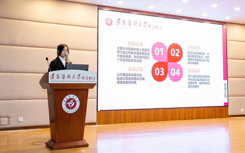 「參加社會實踐得到了鍛煉,讓自己的學習得到一個更明顯的提升。」遵義醫科大學珠海校區基礎教學部2021級臨床13班學生趙鑫澳說,她們隊伍做的是「關於居民了解急救知識情況的調查研究」。通過對走訪的社區調查發現,目前急救知識技能普及情況存在很多問題,隊員們對調查結果做出了細緻的分析,得出了結論,並且對社區提出了調整建議。同時,也建議當地政府將民眾掌握醫療急救知識的程度納入城市文明創建指標,把普及急救知識和技能列為有關部門工作考核範圍,重點人群和行業中開展救護培訓,在中小學建立應急急救課程,把急救自救知識列入班會課,確保在校學生和教職工正確掌握各類應急及自救方法,提高市民自我急救的意識和能力,以及科學對待突發公共衛生事件和日常疾病中的緊急情況。