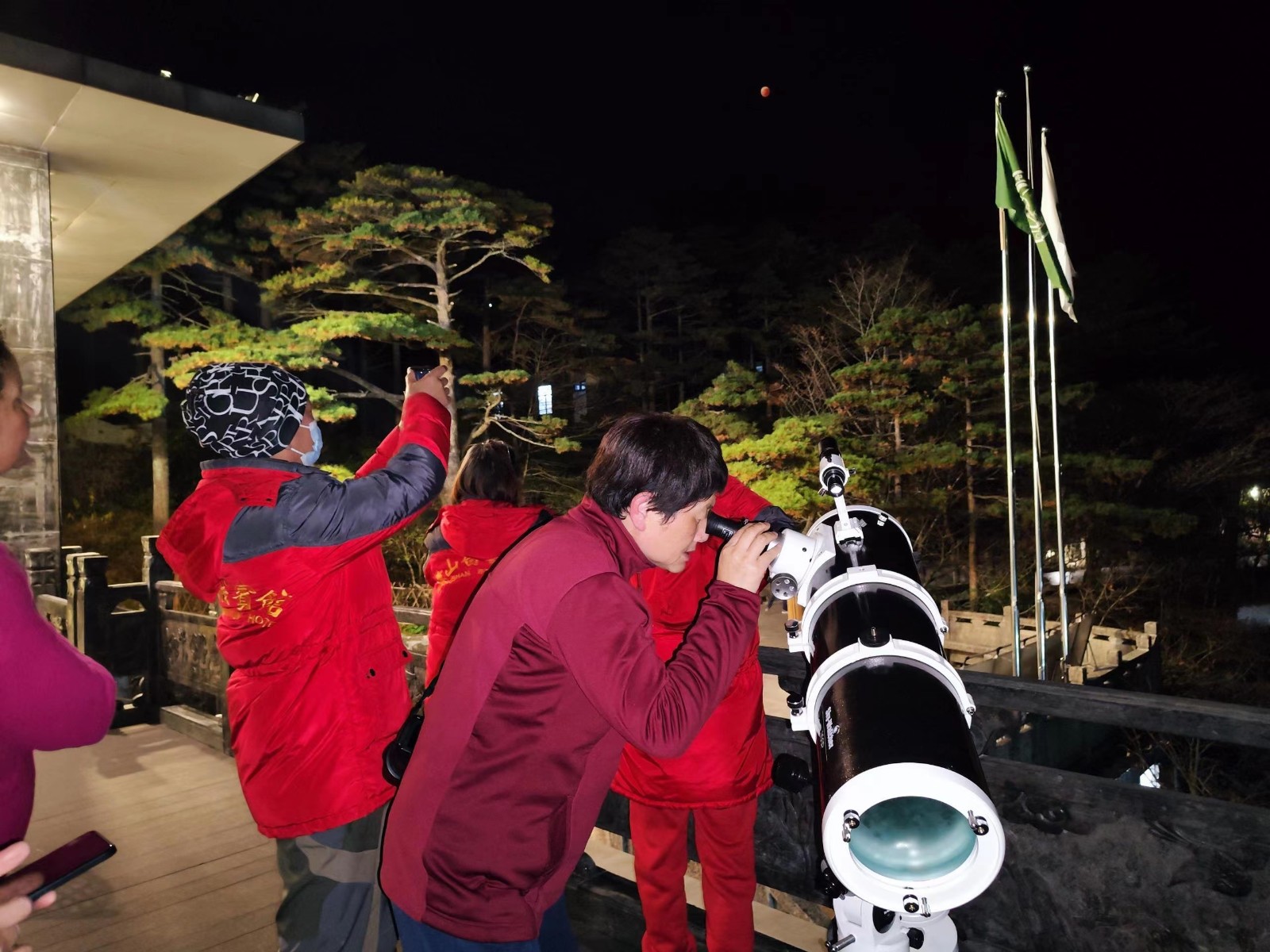 據瞭解,為方便住山遊客觀看「紅月亮」「月全食」天文景象,當晚黃山風景區不少酒店賓館在觀景平台架設天文望遠鏡,供遊客拍照打卡留念。(記者 吳敏 通訊員 侯晏 圖片 姚育青 周冰 段雪峰 徐斌 鮑翔)
