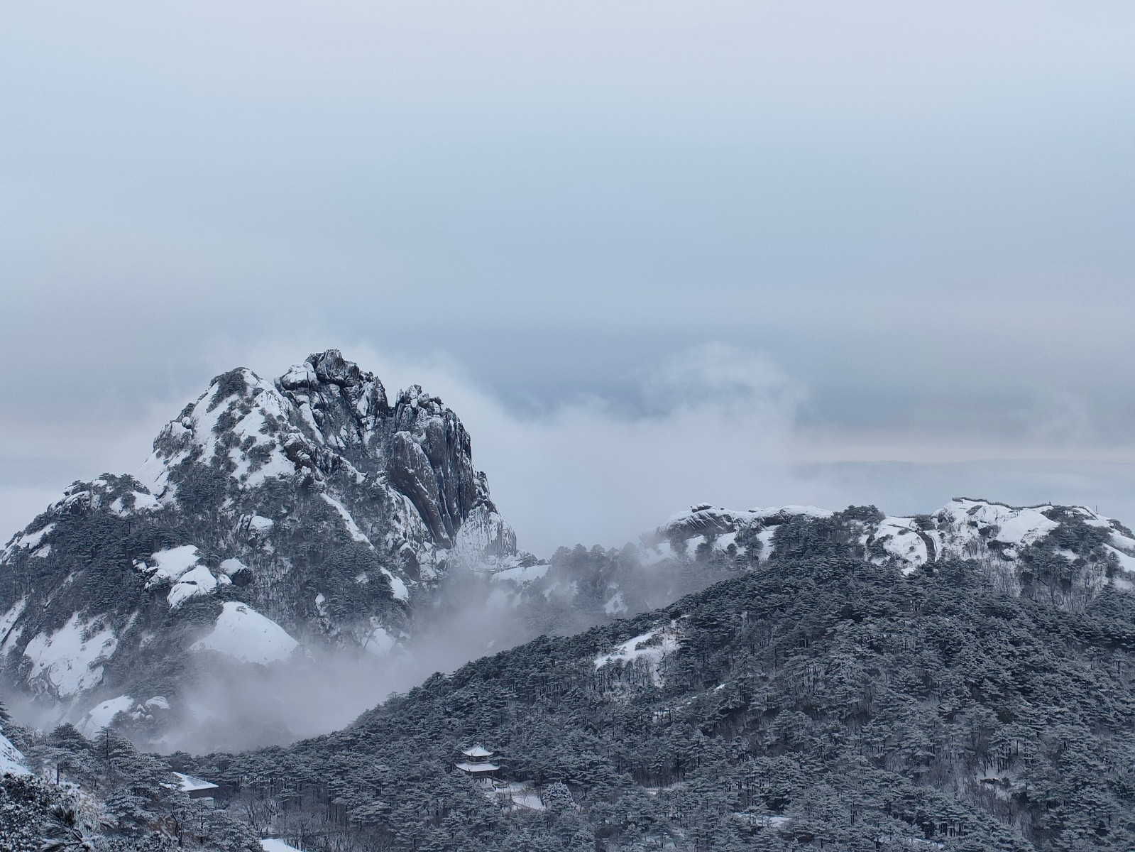 頂圖:黃山冰雪以酣暢淋漓的大筆觸揮灑而就,氣勢磅礴、雄奇壯美。