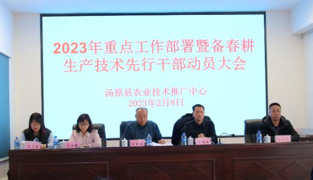 人勤春早爭朝夕,策馬揚鞭開新局。2月8日上午,黑龍江省湯原縣農業技術推廣中心召開了2023年重點工作部署暨備春耕生產技術先行動員大會,向廣大技術幹部發出「動員令」,全力確保2023年農技推廣工作「開門紅」「開門穩」。湯原縣農業農村局黨組書記局長李明坤、副局長張明軍出席會議。