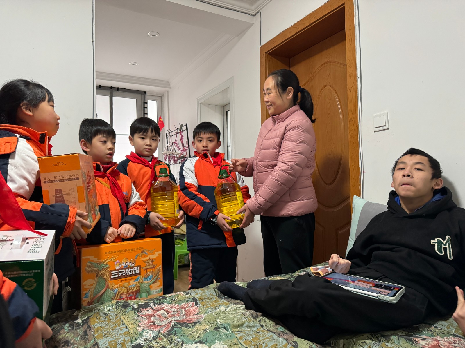 近日,長沙18歲的腦癱少年王釋玉在母親陪伴下自學高中課程3年,並希望通過努力圓自己大學夢的故事感動全網。1月27日上午,20多名長沙市開福區清水塘北辰實驗小學的小學生前往小王家向他學習並送上了新年禮物,祝哥哥身體健康,實現自己的夢想。(記者 何雯)