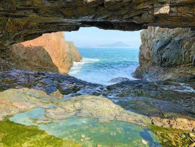 在鯨魚標本對出的海邊,會看見海蝕洞「蟹洞」,又稱上帝之眼、彩虹之門,不少人喜歡走到蟹洞底拍照,甚至到海邊觀浪,但要警惕巨浪會隨時捲過來,而且但凡海水濺到、有海洋生物的位置也是禁區,主要作保育與科研用途,遊人接觸到海水有機會犯法。所以,在蟹洞前方欣賞一下便好了。