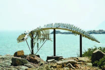 繼續前行到丫形路口,左邊上斜看燈塔,右邊下行往海岸保護區,記者選擇先快速去看看燈塔,這個名為「德己立角燈塔」的建築,是香港現存歷史最悠久的燈塔,守候?鶴咀過百年,於2005年被列為法定古蹟,「朝聖打卡」的人群絡繹不絕,想拍照得要排隊。在丫形路口右轉可前往鶴咀最大的亮點——海岸保護區。途中經過雷音洞,每次海浪經狹道湧入,衝擊洞壁都會發出巨響,如雷聲震耳,故而得名。若時間有限,也可繼續往海洋研究所方向走,到達海邊,每一處都有人拍照留念。為免污染海岸保護區內的生態環境,在岩岸遊覽時,不要行得太近海邊,職員也會用擴音器提醒遊人,不想為拍照而丟臉,務必注意。再走幾步,就會見到另一個打卡位鯨魚白骨,但也要記得眼看手勿動,勿破壞鯨魚骨。
