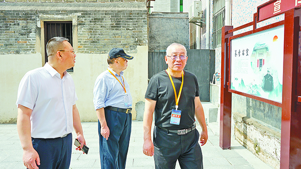 著名作家王炳根在參觀時對這裏的浮雕彩繪和石質窗框,讚不絕口。他拿起手機拍了起來,說回去要帶給家裏的年輕一輩欣賞和學習。