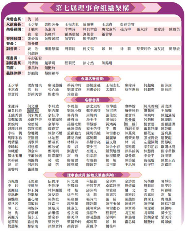 前任會長彭徐美雲致辭時表示,港區婦聯始終牢記使命,承前啟後團結婦女界的精英,推進會務工作走向專業化、規範化,成為有活力、有特色及有影響力的團隊。她希望在會長陳曼琪的帶領下,港區婦聯繼續開拓創新,維護「一國兩制」,為中華民族的偉大復興貢獻力量。
