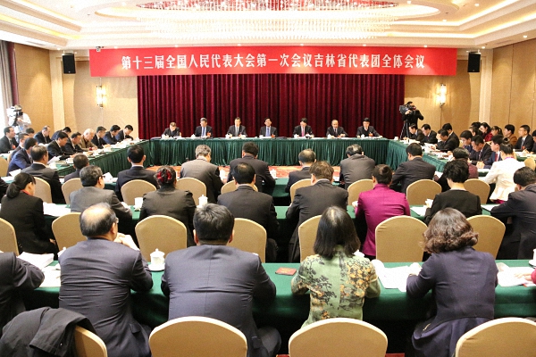 第十三届全国人民代表大会第一次会议吉林省代表团全体会议审议宪法修正案草案
