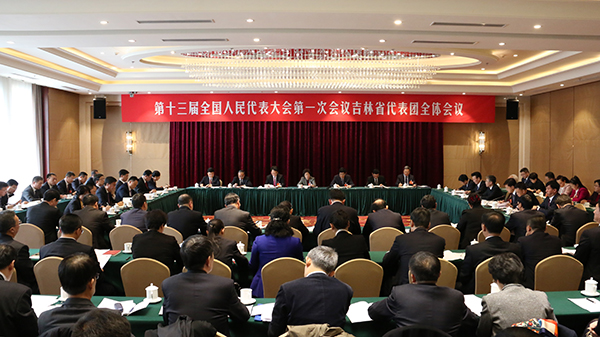 第十三届全国人民代表大会第一次会议吉林省代表团全体会议审议政府工作报告