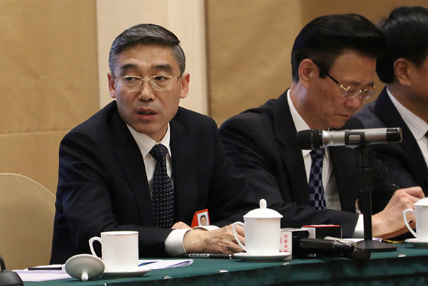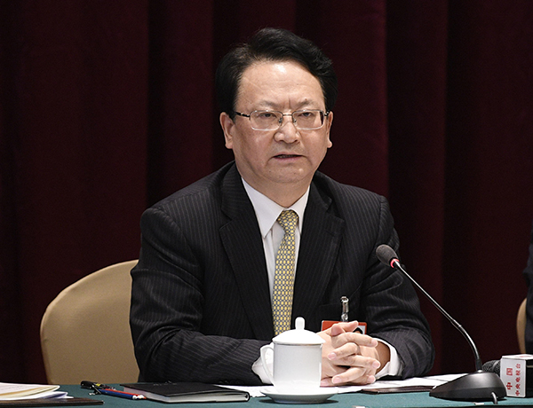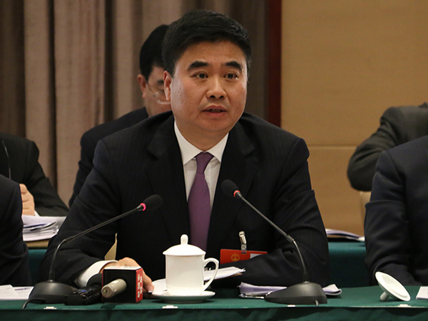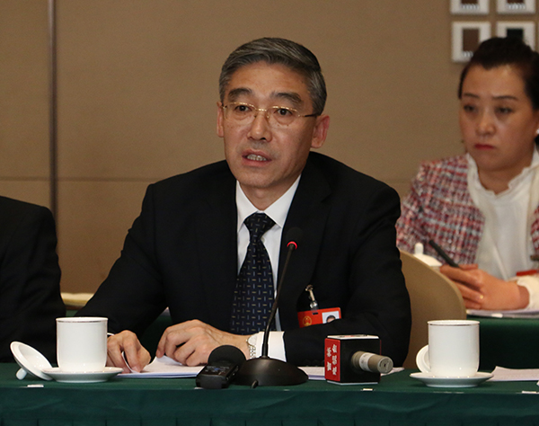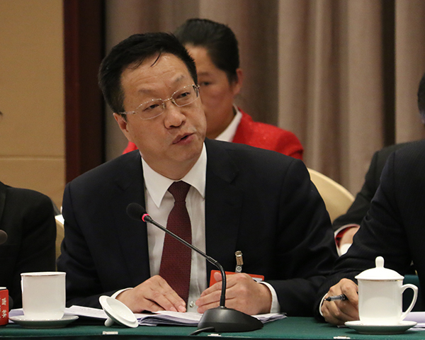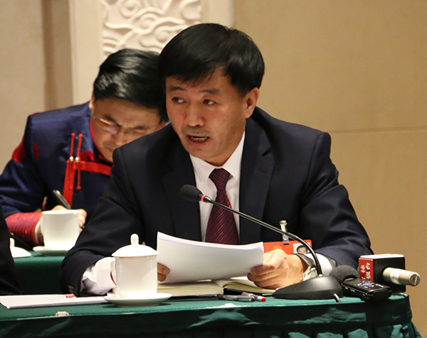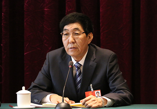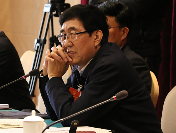 全国人大代表、吉林省委书记巴音朝鲁听取代表发言
