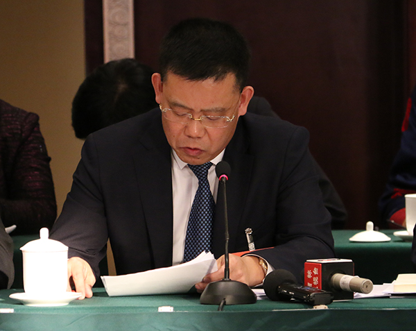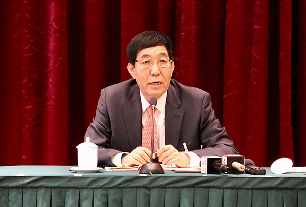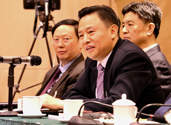 全国人大代表、吉林省人大常委会党组书记、副主任金振吉媒体开放日主持会议