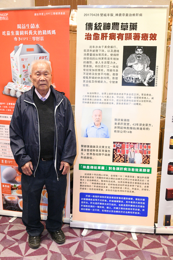黃鎮雄早前出席香港元朗早茶會,分享運用神農草藥治療肝病患的心得。