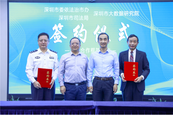 結合各自的需求及優勢,深圳市政府和深圳市大數據研究院攜手共同研究大數據賦能法治建設應用場景,雙方將在依法治市和司法行政等領域的大數據開發與應用方面進行深入合作,實現數據清理、數據庫建設、數據分析與應用、科研探索和政策諮詢的無縫對接。
