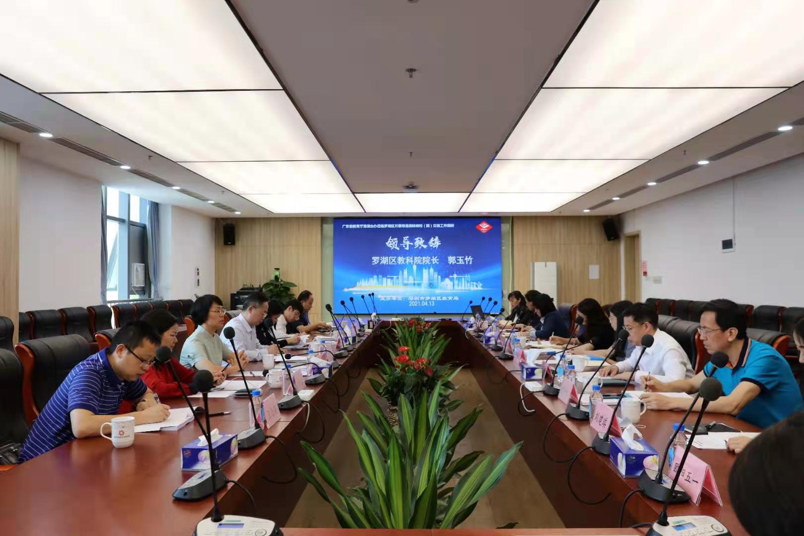 為進一步落實粵港澳大灣區重大發展戰略,密切粵港澳三地教育交流合作,推動粵港澳大灣區教育高質量發展,4月13日,廣東省教育廳港澳台辦領導蒞臨深圳市羅湖區教育局開展粵港澳姊妹學校調研。廣東省教育廳港澳台辦主任李金俊、廣東省教育廳港澳台辦副主任王靜嫻、廣東省教育研究院基礎教育研究室助理研究員余奇、廣東省教育研究院高等教育研究室副研究員王志強、深圳市教育局社會力量辦學管理處處長李雅萍、深圳市教育局社會力量辦學管理處一級主任科員劉金英、羅湖區教育局四級調研員陳永歡、羅湖區教育科學研究院院長郭玉竹院長等相關領導出席。