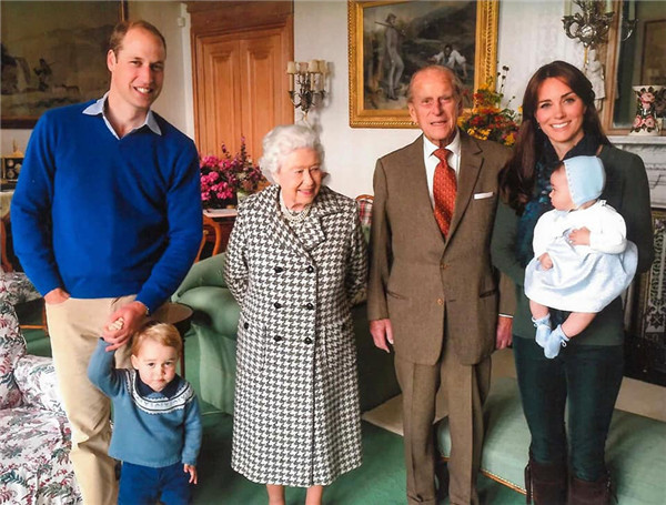 頂圖的照片攝於2018年,女皇伊利沙白二世(Queen Elizabeth II)將當時剛出生的路易皇子(Prince Louis)抱在膝上;夏綠蒂公主(Princess Charlotte)坐在祖父母中間,一手俏皮向鏡頭打招呼,一手拉着弟弟。