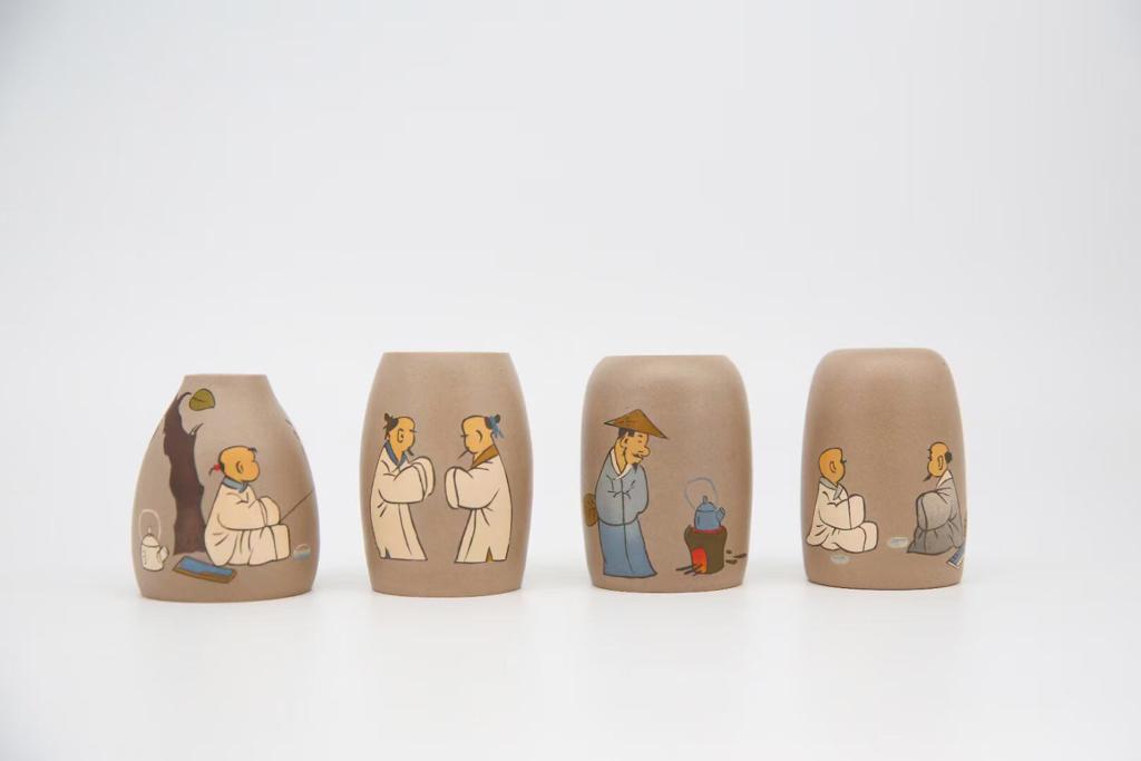 建水紫陶講究精工細作,集實用性與觀賞性於一身,尤其注重裝飾,通常以書畫鏤刻、彩泥鑲填為主,集書畫、金石、鐫刻、鑲嵌等裝飾藝術於一身。劉勇的繪畫加入其中,則給人耳目一新的感覺。以陶為紙,既要保留筆墨線條的韻味、表現故事性,又要兼顧燒製陶坯時的各種情況,當中的難度不言而喻。不過於小小的陶瓷上,劉氏的繪畫依舊帶着玩味,足見其繪畫和構圖功力,也體現了「畫不在大,有趣則靈」的特色。 (記者:Janice)