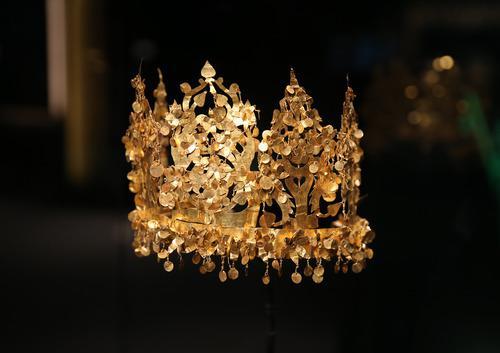 在香港歷史博物館展出的阿富汗黃金王冠。新華社